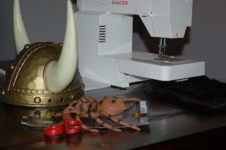 We are still working on that costume for Eric. Bolts of fur needed to be moved before we could eat. This costume is overtaking our home! LOL. Here are some photos of our dining room table that really made me laugh with its randomness.