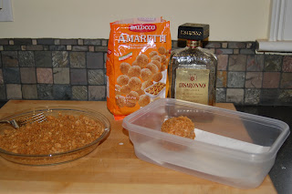 2. Drizzle 1/4 cup of Amaretto over cookie crumbs and stir