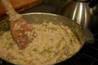 Tonight – crab and pea risotto along with Tiger Woods PGA Wii Golf with Miss DeVore. It’s de rigueur!